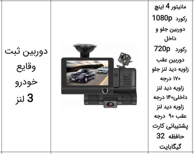 دوربین ثبت وقایع ۳ لنز یک دستگاه پیشرفته برای نظارت و ضبط تصاویر در خودرو است که همزمان از سه زاویه مختلف (جلو، عقب و داخل خودرو) فیلمبرداری میکند. این دوربینها بهویژه برای رانندگان حرفهای، تاکسیها، و افرادی که به امنیت خودروی خود اهمیت میدهند، بسیار کاربردی هستند. در ادامه به ویژگیها، مزایا، و مدلهای مختلف این دوربینها میپردازیم: